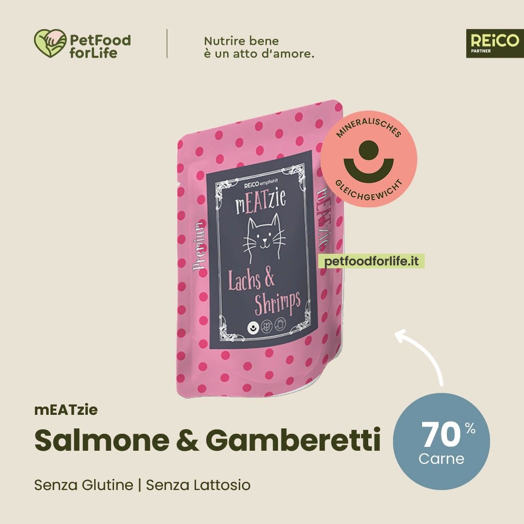 🐟 Con salmone 25%, brodo di carne 25%, carne di pollo, fegato 24%, polmone di manzo 11%, gamberetti 10%, olio di salmone, miscela di alghe micronizzate che fornisce al corpo il corretto equilibrio minerale.